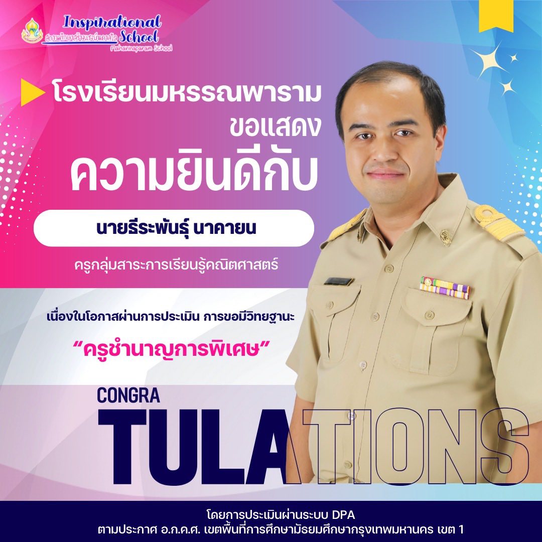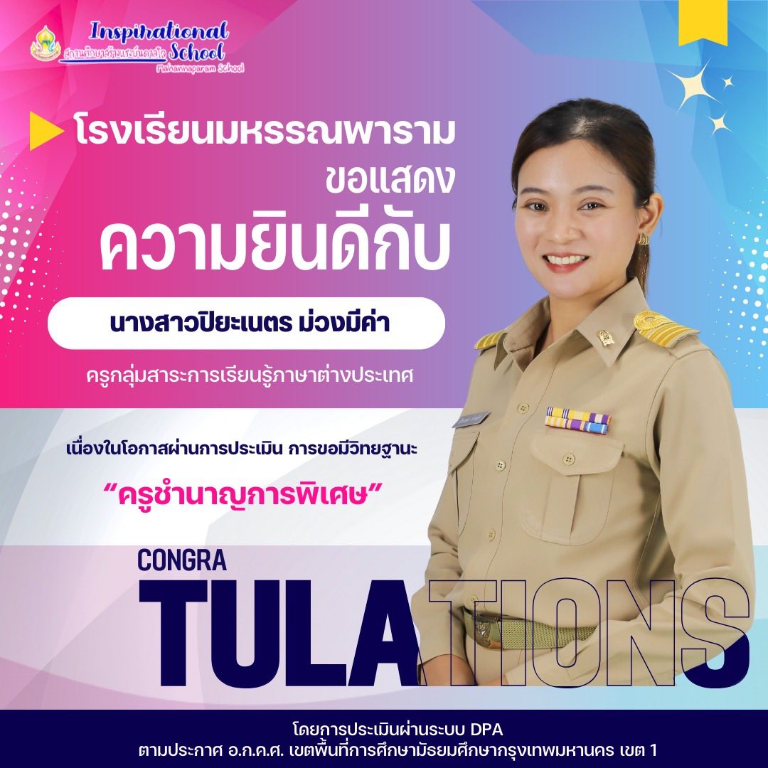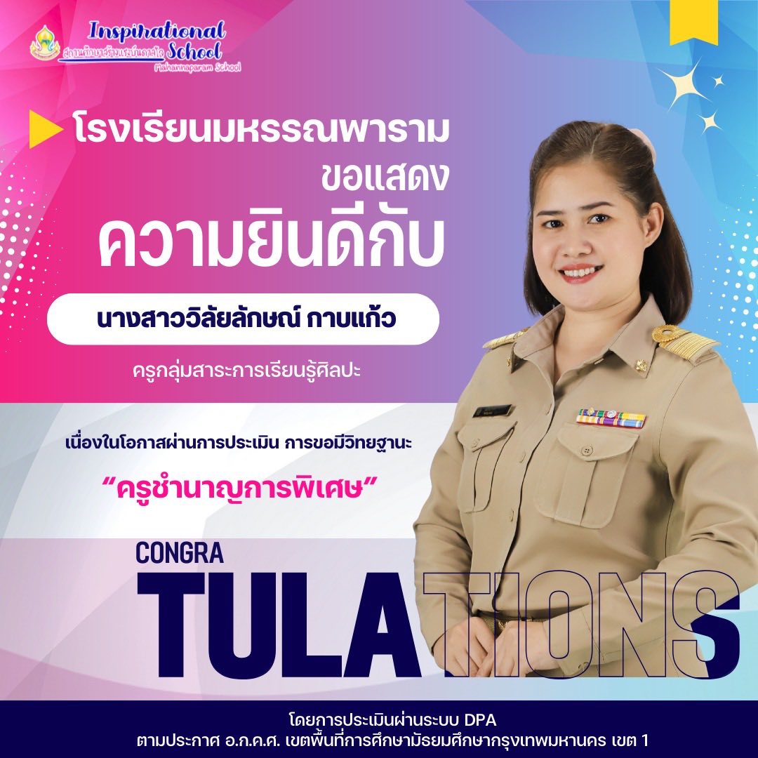 โรงเรียนมหรรณพารามขอแสดงความยินดีกับ