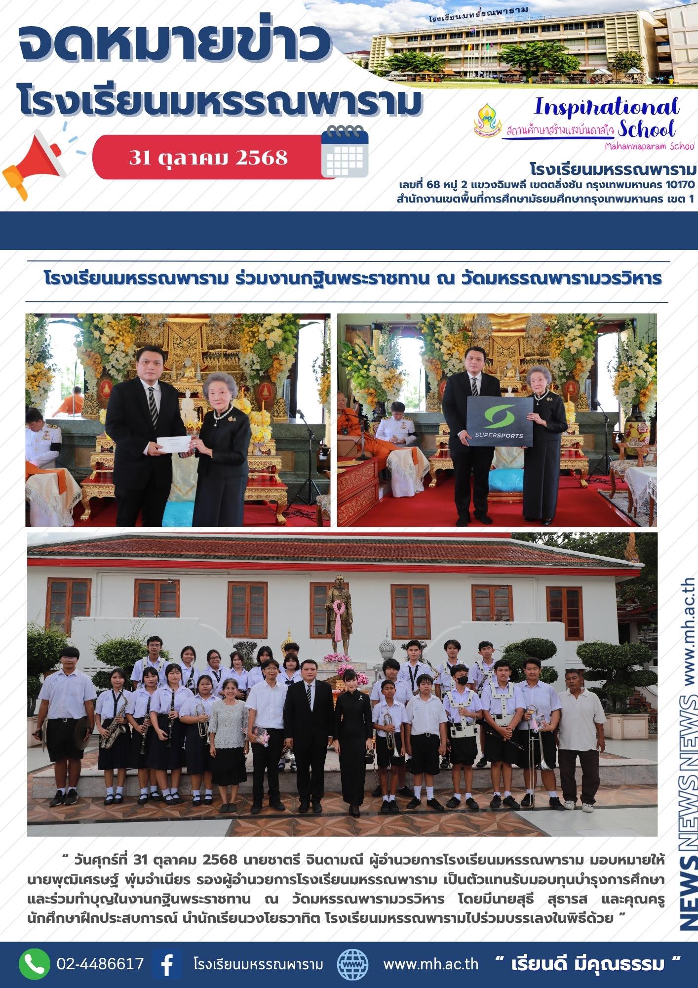 วันศุกร์ที่ 31 ตุลาคม 2568 นายชาตรี จินดามณี ผู้อำนวยการโรงเรียนมหรรณพาราม มอบหมายให้นายพุฒิเศรษฐ์ พุ่มจำเนียร รองผู้อำนวยการ เป็นตัวแทนรับมอบทุนบำรุง...