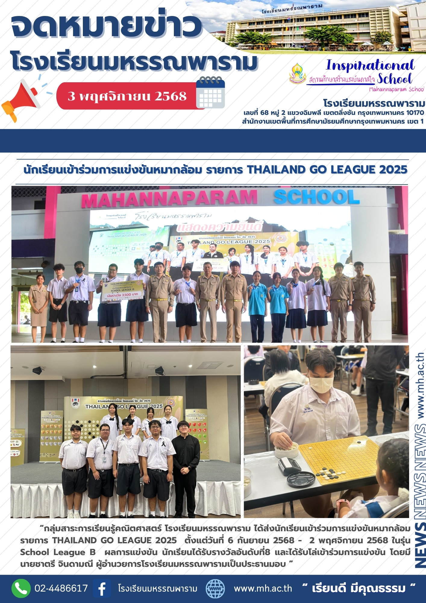 กลุ่มสาระการเรียนรู้คณิตศาสตร์ โรงเรียนมหรรณพาราม ได้ส่งนักเรียนเข้าร่วมแข่งขันหมากล้อม รายการ THAILAND GO LEAGUE 2025 ตั้งแต่วันที่ 6 กันยายน - 2 พฤศ...