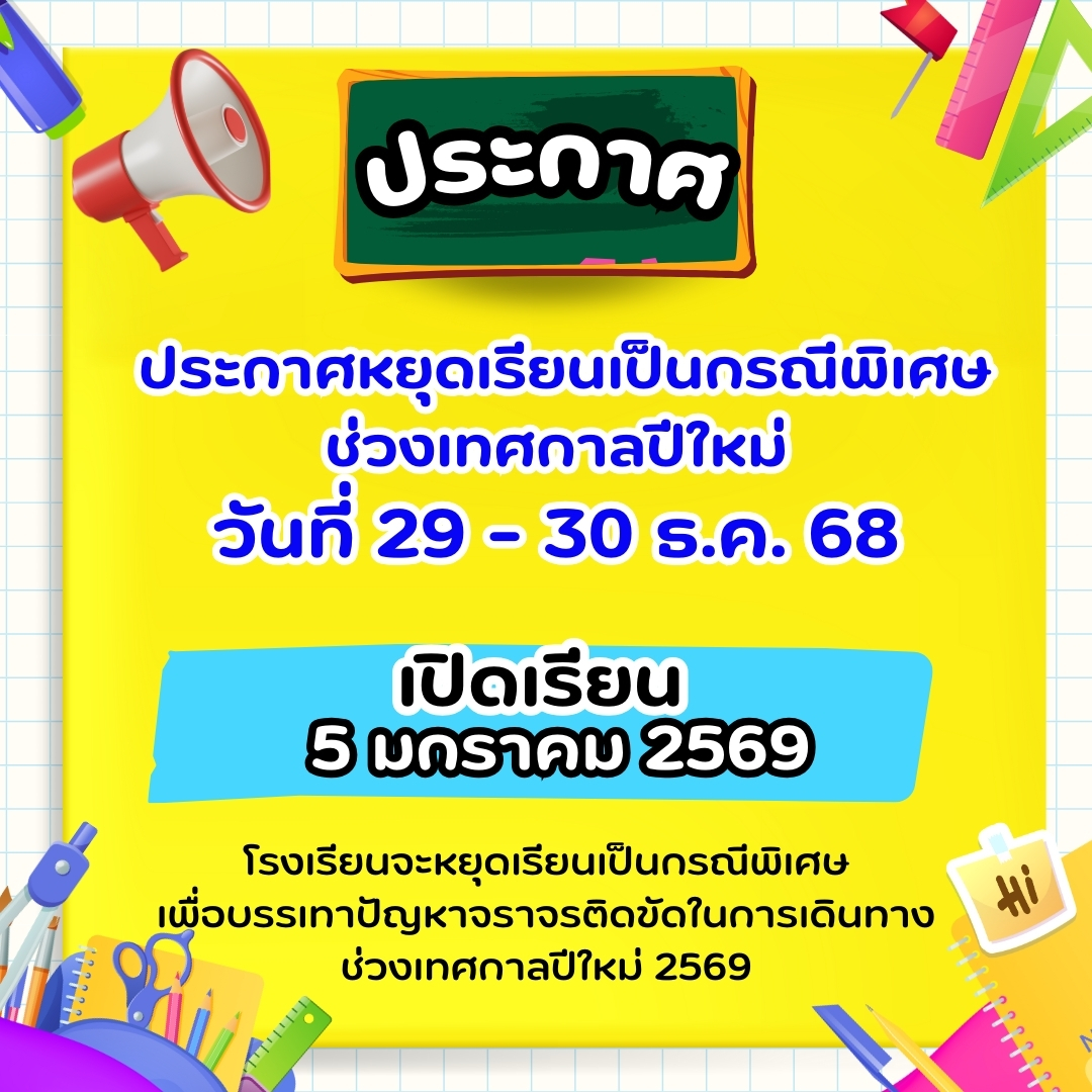 โรงเรียนจะหยุดเรียนเป็นกรณีพิเศษ ในวันที่ 29-30 ธันวาคม 2568